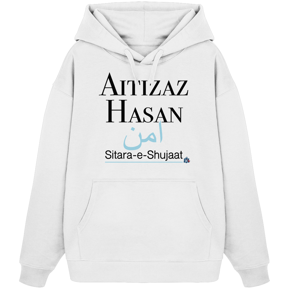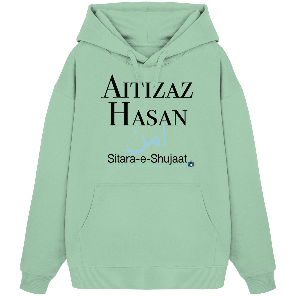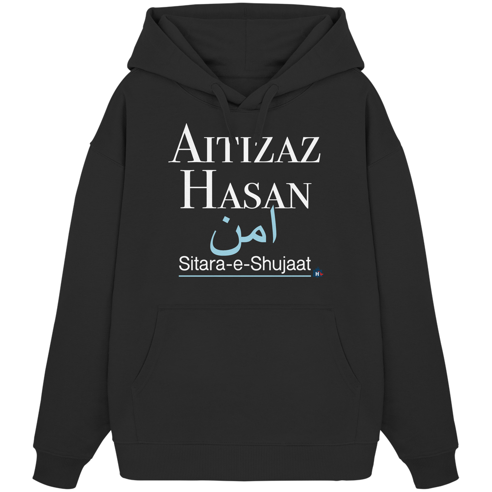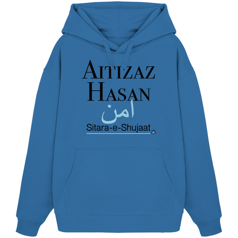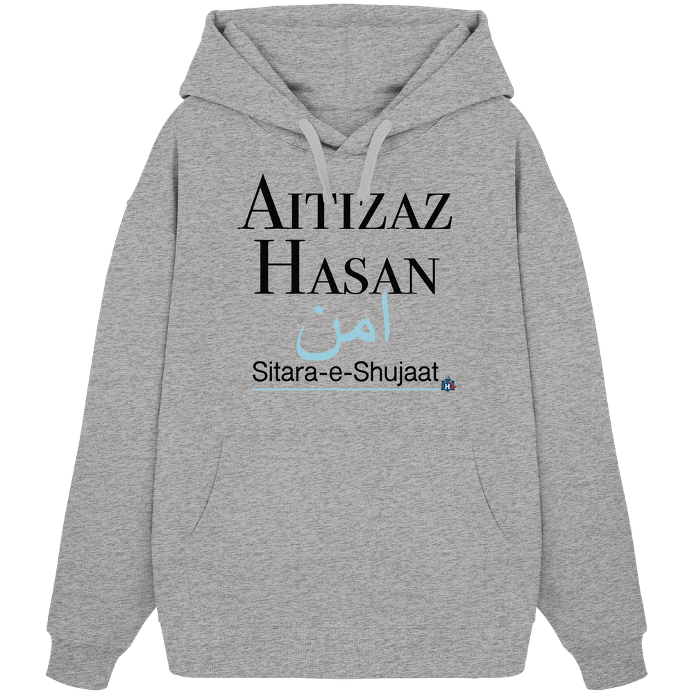 Entdecke den HeldAitizazHasan Hoodie von Heldenburg, eine Hommage an innere Stärke und Mut. Mit seinem eleganten, minimalistischen Design und den sanften Blautönen symbolisiert er Frieden und Beständigkeit.